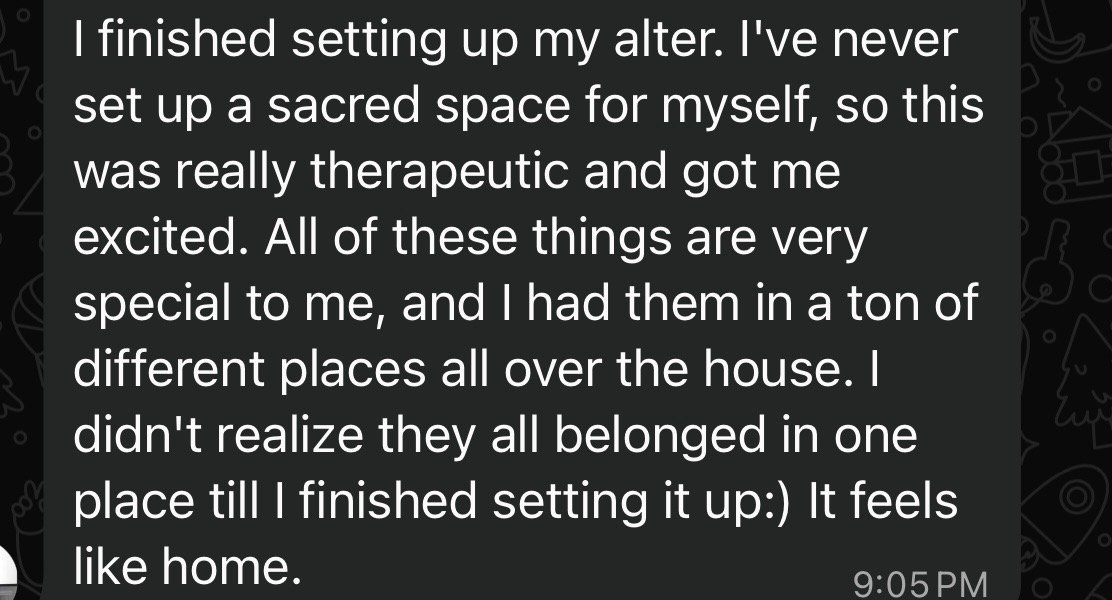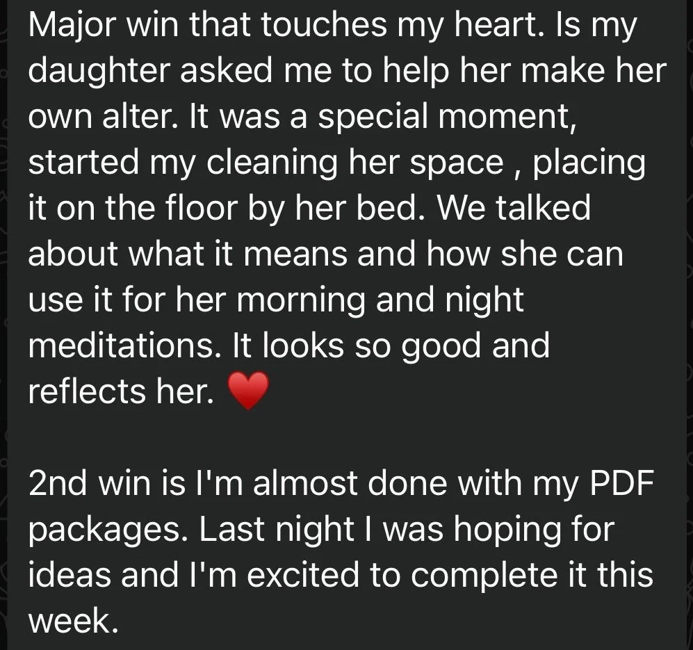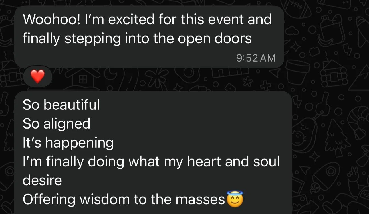 “I came into this program wanting to get back to my spiritual practices and being more aligned with myself - I definitely achieved that goal. I also have noticed how many doors have opened and how many opportunities are presenting themselves to me once I finally let go of all the things that no longer served me.”