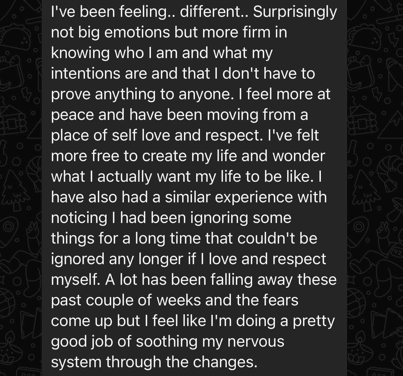 I noticed I didn’t react or become defensive anymore. My communication skills became more fluid and more confident which then led to deeper connections and new friends. I strengthen my relationship with my parents and let go of the need to be approved by them. I have absolutely no shame in being my true, authentic, weird self.